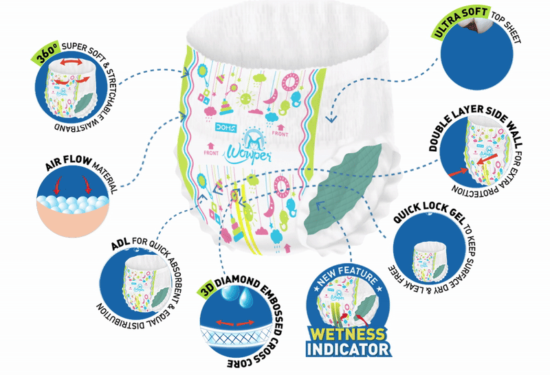 Spreads fluid evenly to keep your baby’s skin soft & dry, away from moisture.
